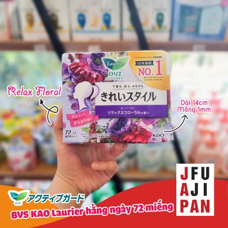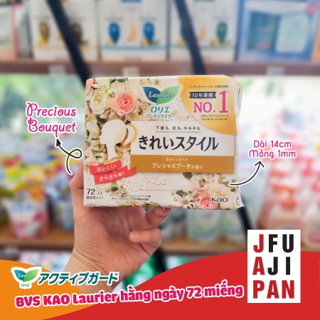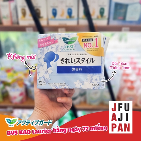 - Băng vệ sinh hàng ngày Laurier 72 miếng với chất liệu mềm mại, nhẹ nhàng cho da, không gây tổn thương da.