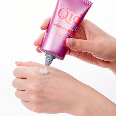 Kem dưỡng da tay Kose CoenRich Q10 Whitening Medicated với thành phần Q10 với hỗn hợp Coenzyme chiết xuất nhân sâm và thảo mộc tự nhiên sẽ thẩm thấu làm hoạt hóa tế bào, dưỡng ẩm và mịn da đặc biệt kem dưỡng da Q10 giúp xóa bỏ dần các đốm nâu và chai sần trong lòng bàn tay.