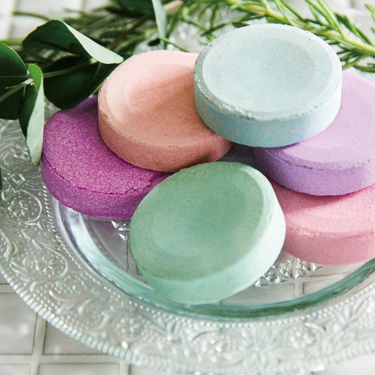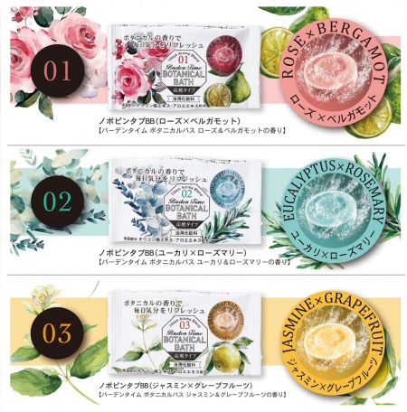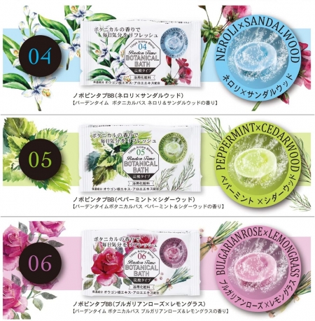 Muối tắm dạng viên có ga cho phép bạn lựa chọn từ 7 loại với mùi hương thực vật tùy theo tâm trạng trong ngày.