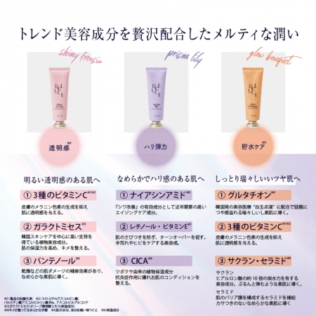 Lựa chọn bao gồm "Shiny Freesia", hương thơm ngọt ngào mang đến làn da trong suốt, "Prism Lily" - hương thơm tinh khiết giúp da săn chắc và đàn hồi, và "Glow Bouquet" - hương thơm giữ ẩm, mang lại cảm giác mịn mượt cho làn da.