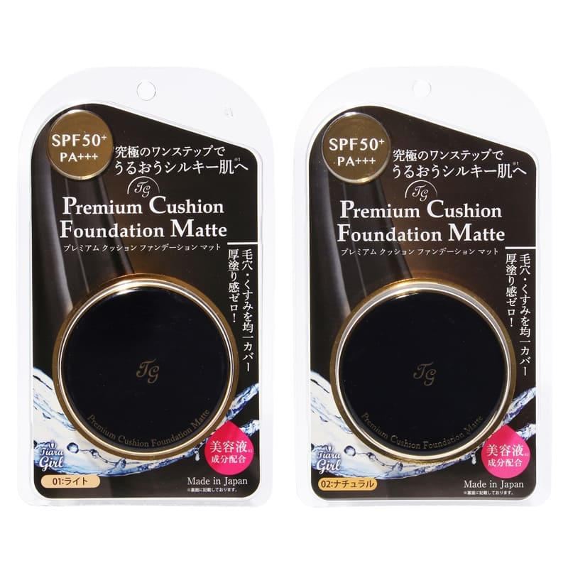 Phấn nước Tiara Girl Premium Cushion Foundation Matte Light dành cho da dầu, hỗn hợp. Giúp nhẹ nhàng che phủ lỗ chân lông, tàn nhang, vết thâm, đem đến làn da mịn màng tự nhiên. Kết hợp chống nắng tối đa cùng thành phần dưỡng ẩm, cung cấp dinh dưỡng và độ ẩm cho da, duy trì làn da mềm mại hoàn hảo sau khi trang điểm.