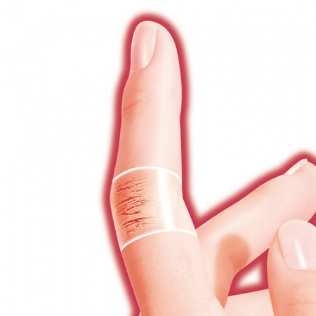 (1) Bóc lớp giấy bảo vệ trên bề mặt và dán mặt có keo vào vết thương.