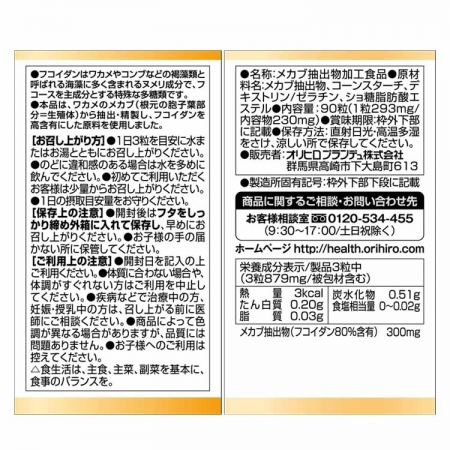 Thành phần: Chiết xuất Mekabu, tinh bột ngô, dextrin/gelatin, este axit béo sucrose.