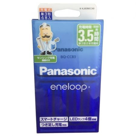 - Bộ sạc BQ-CC83 tương thích với cả pin sạc Evolta và Eneloop.
