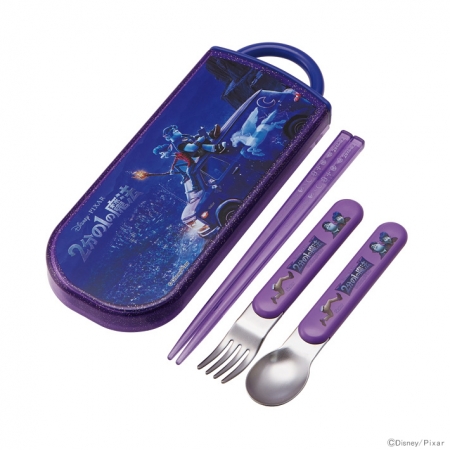 Một bộ đũa, nĩa, thìa và hộp đựng cho bé yêu có thể rửa bằng máy rửa chén. In hình nhân vật hoạt hình nổi tiếng của Pixar "Onward" (Truy tìm phép thuật).