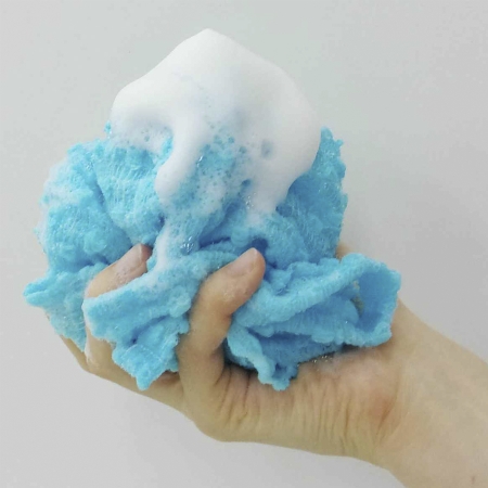 - Chất liệu: sợi tổng hợp. Bề mặt khăn được thiết kế có độ nhám cao giúp kỳ cọ dễ dàng.