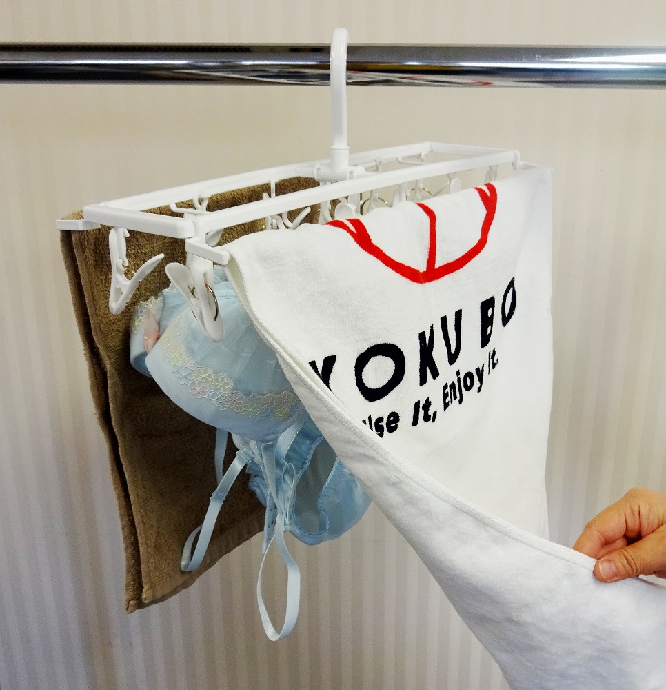Móc treo có kẹp tiện lợi Kokubo, thiết kế thanh mở treo khăn ở cả hai mặt. Móc xử lý chống trượt không dễ dàng dịch chuyển sang một bên giúp đồ giặt không bị xê dịch. Có thể cất gọn vì có thể gấp lại khi không sử dụng.