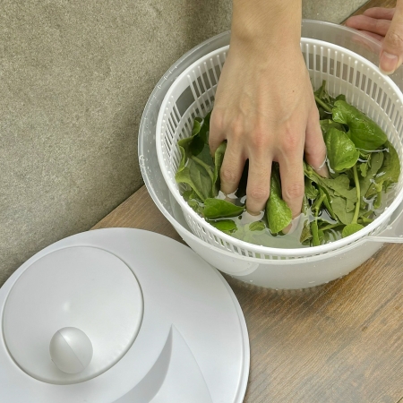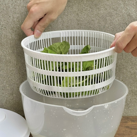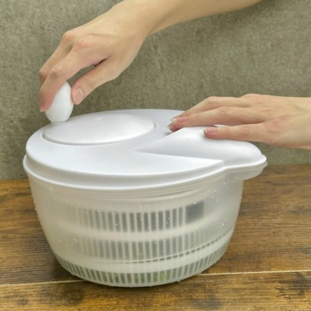 - Đây là dụng cụ để quay và làm khô rau, giúp ráo nước rau củ.
