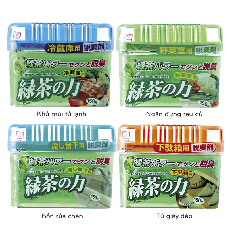 Công dụng: Khử các mùi hôi, mùi thức ăn trong tủ lạnh, làm không khí trong tủ tươi mát và vệ sinh. Tác dụng tốt nhất trong vòng 3 tháng. Thơm mùi trà xanh dễ chịu.