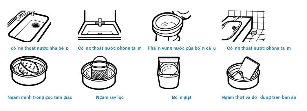 Sử dụng cho bồn rửa, nhà bếp, cống thoát nước phòng tắm và khu vực vũng nước bồn cầu.
