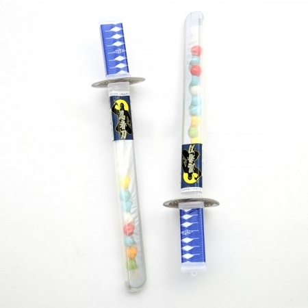 Kẹo cao su nhiều màu sắc đựng trong hộp đựng hình thanh kiếm cho bé.