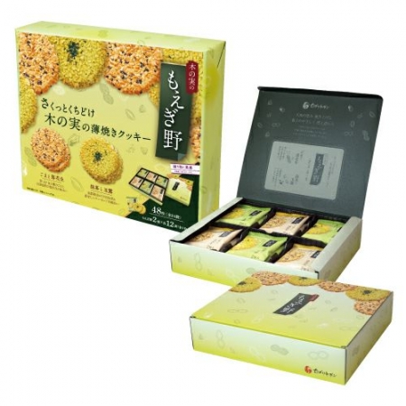 Moegino sử dụng bột mì và bột gạo quốc sản Nhật để tạo ra loại bột giòn tan trong miệng, phủ lên trên là các loại hạt, món quà từ đất mẹ, để tạo nên chiếc bánh quy mỏng, thơm ngon và béo ngậy.