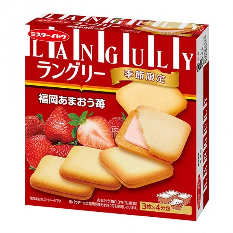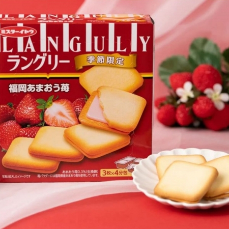Bánh quy "Languly Fukuoka Amaou Strawberry" được làm từ bột bánh langue de chat mềm mịn và nhân kem làm từ dâu tây Amaou của tỉnh Fukuoka. Nhân kem có hương thơm ngọt ngào và tươi mát, nhờ sử dụng dâu tây Amaou từ tỉnh Fukuoka.