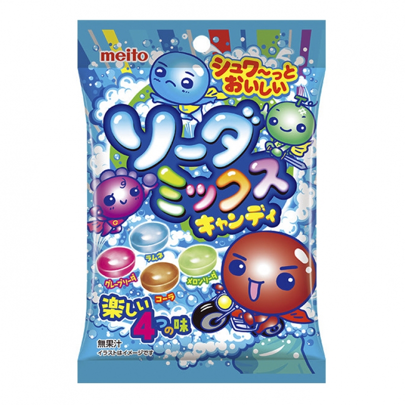 Kẹo soda nổ lách tách vui miệng với 4 hương vị trái cây tổng hợp cho bạn thêm chọn lựa khi thưởng thức gồm: cola, ramune, vị nho và dưa lưới.