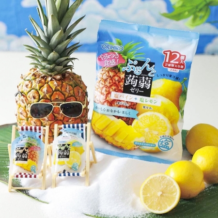 Siro ngô hàm lượng fructose cao (sản xuất tại Nhật Bản), đường, nước ép dứa, muối, bột konjac/chất tạo axit, chất tạo gel (polysaccharide làm đặc), hương liệu, kali clorua, chất tạo ngọt (acesulfame kali, sucralose).