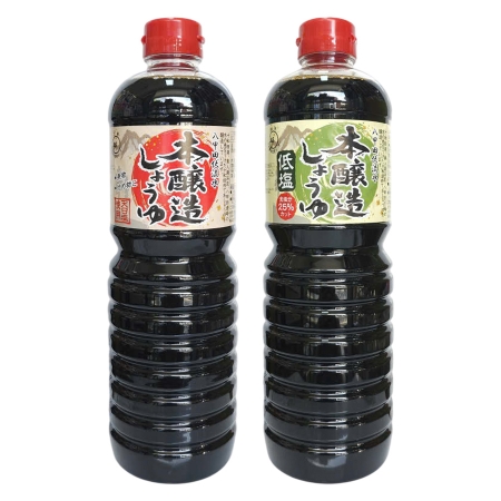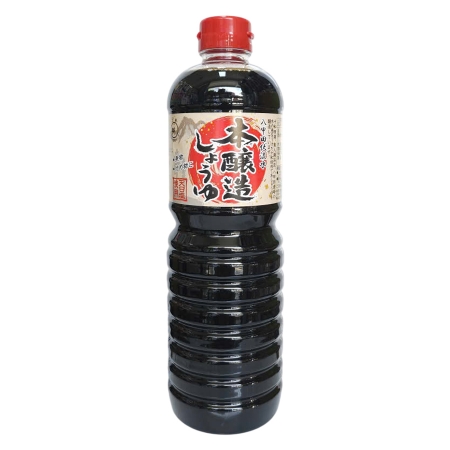 "Đây là chai nhựa đựng nước tương 1L, sản phẩm nhãn hiệu riêng của Gyomu Super. Khi nhìn vào bao bì, bạn sẽ thấy sản phẩm được sản xuất bởi Công ty TNHH Wadakan ở Tỉnh Aomori và là dự án hợp tác với Kobe Bussan.