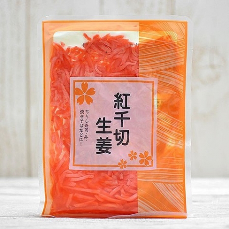 Gừng thái sợi này được ướp trong một loại nước gia vị đặc biệt để tạo nên hương vị thơm ngon. Dùng để trang trí sushi, cơm nắm, mì yakisoba, v.v..