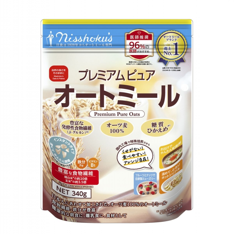 Yến mạch Nisshoku's Premium Pure Oats là sản phẩm thuộc tập đoàn Nippon Nhật Bản. Loại ngũ cốc này được làm từ 100% yến mạch, được rang và cán dẹt thành từng mảnh, không chứa chất phụ gia thực phẩm. Yến mạch giàu chất xơ và sắt, đồng thời cũng chứa vitamin B1 và protein.