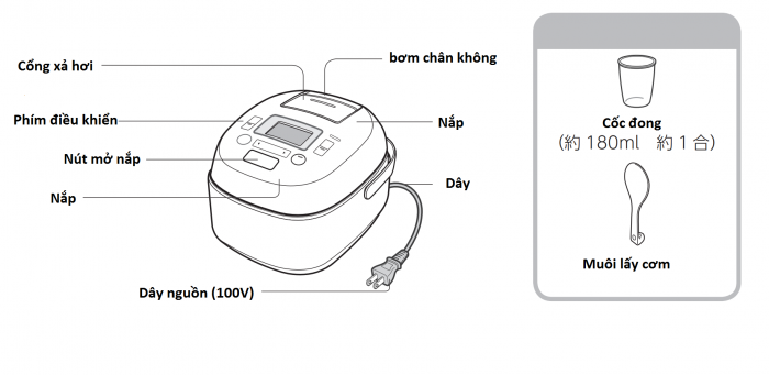 - Cắm nồi cơm với điện 100V.